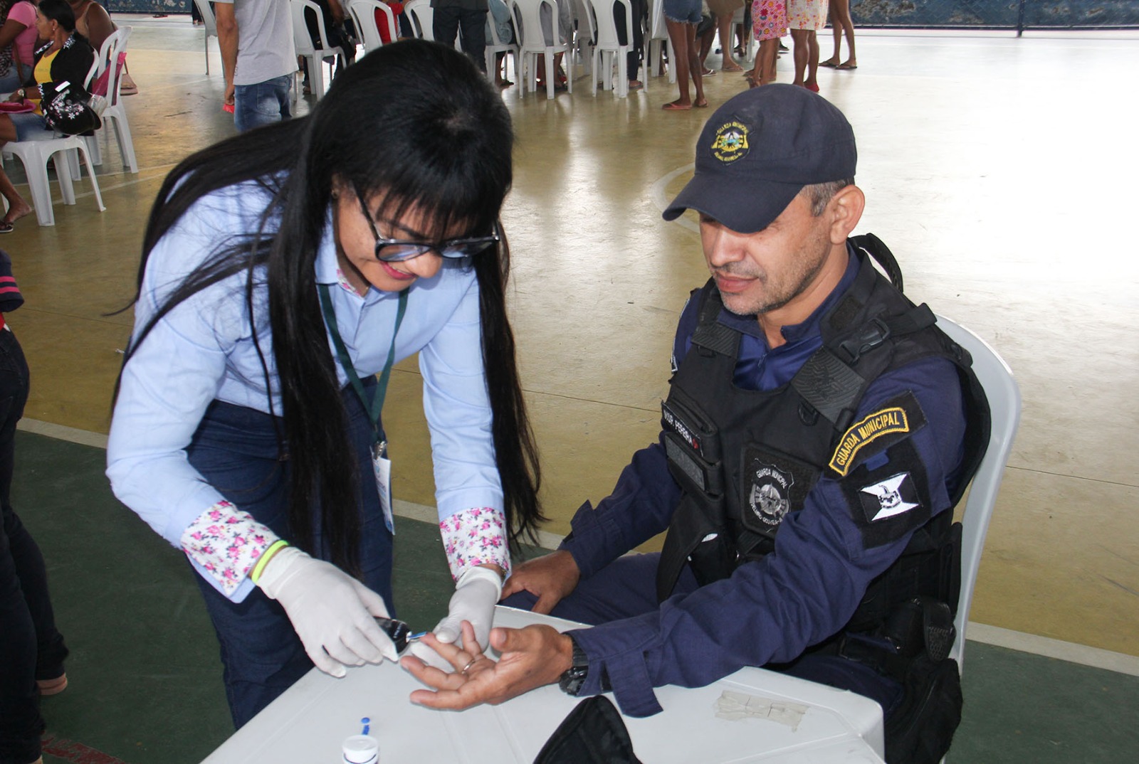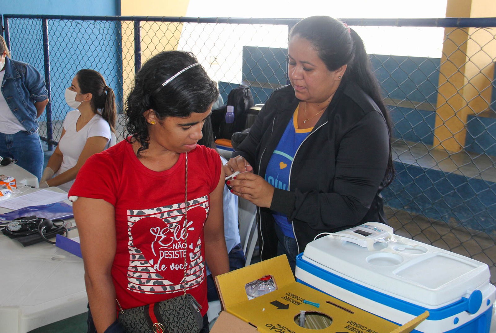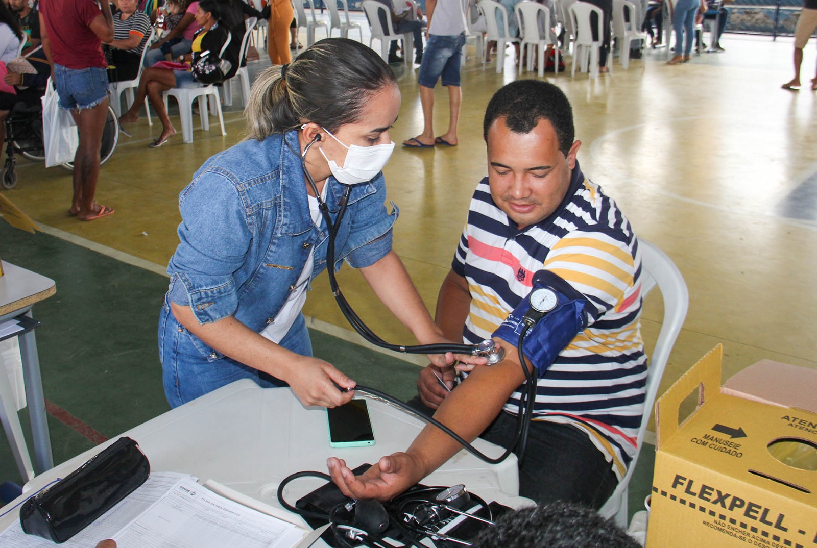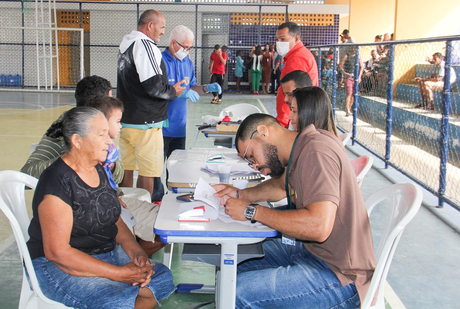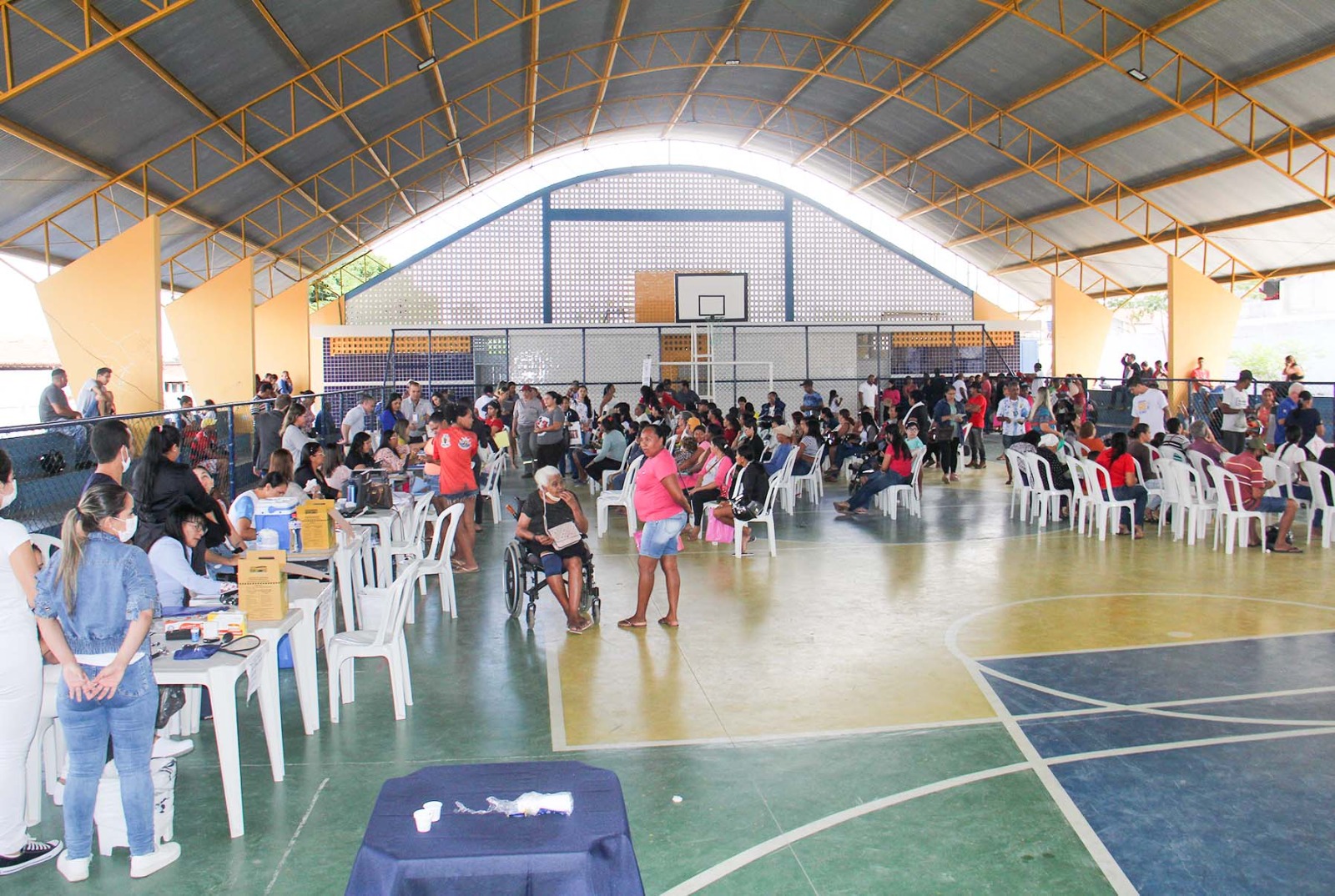 Atendimentos na quadra poliesportiva da Escola Afrânio Lages, em Delmiro. Foto Niel Rodrigues