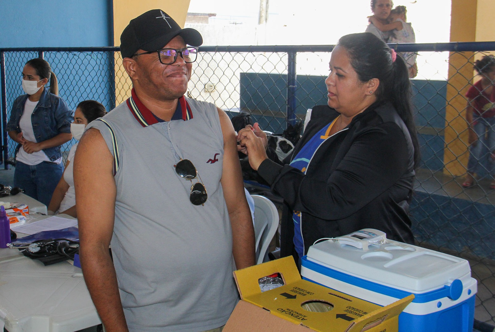 O professor de História Clécio Lopes da Silva e a esposa, a dona de casa Raquel Ferreira Lima, já moram juntos há um tempo, mas ainda não oficializaram a união. Para isso acontecer, vieram emitir a segunda via da certidão de nascimento e aproveitaram a campanha para atualizar o cartão de vacinação. "O atendimento foi rápido e ótimo”, informou Clécio.
