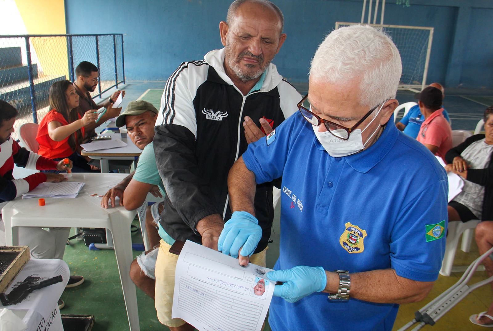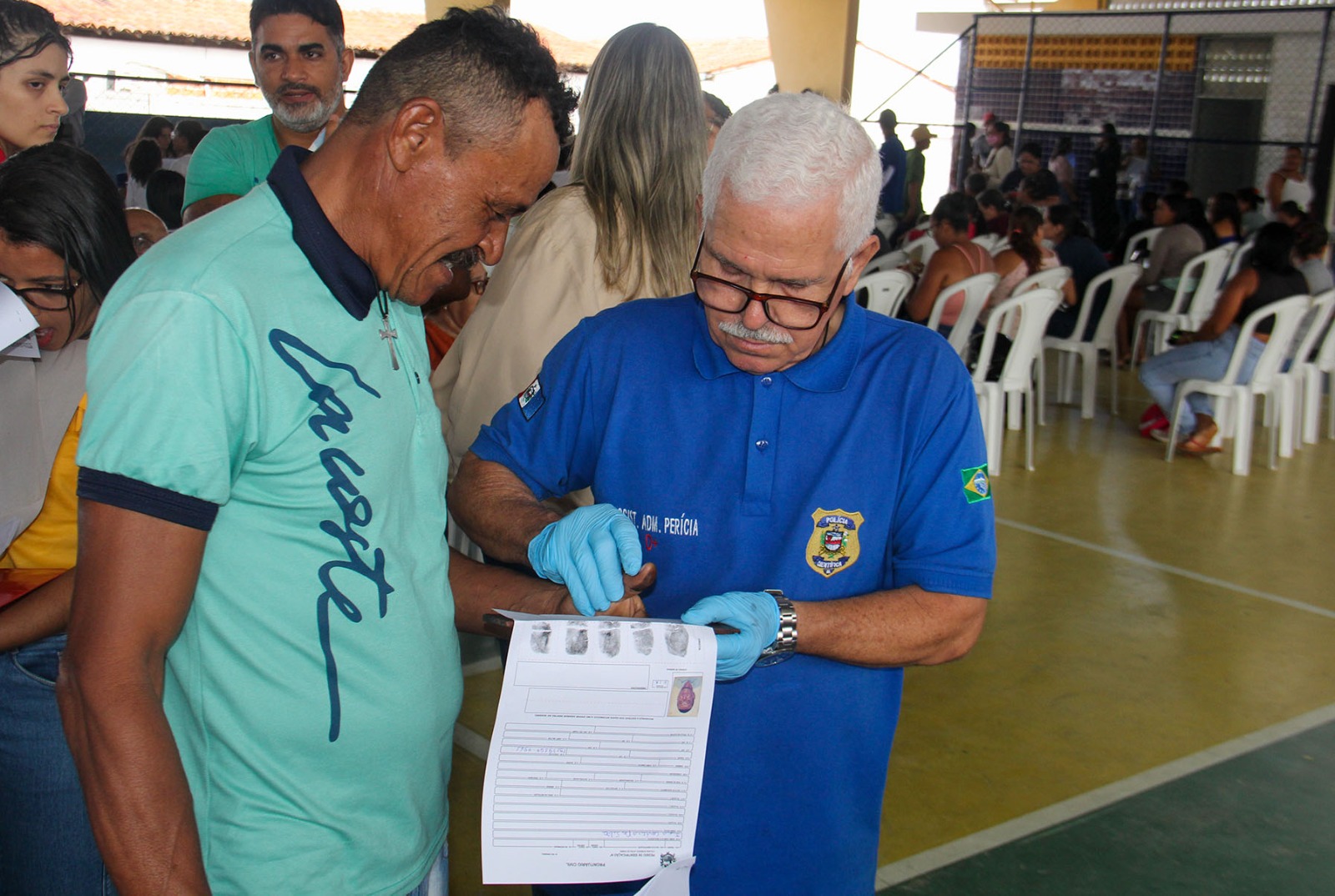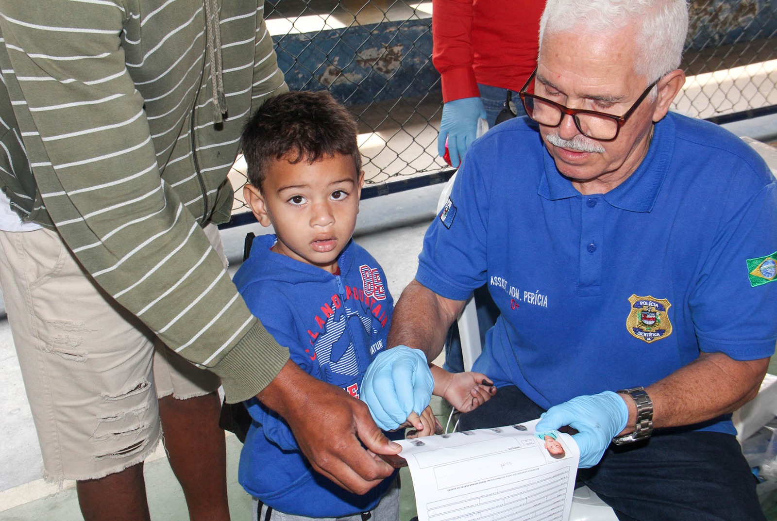 Eduardo e o filho, Ítalo, durante a coleta das impressões digitais. Foto: Niel Rodrigues