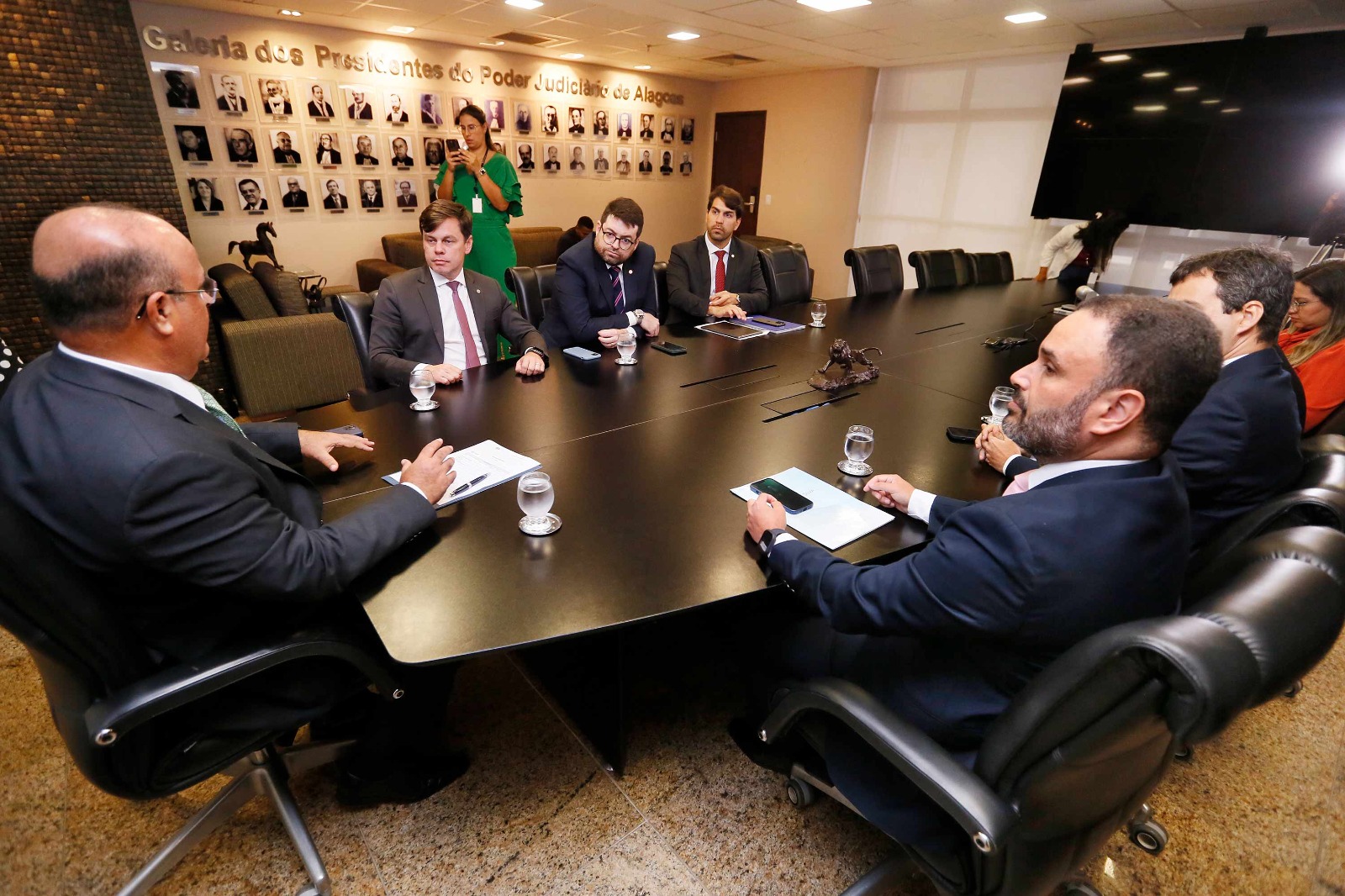 Participaram da reunião, o juiz auxiliar da Presidência João Paulo, o vice-presidente da Almagis, Bruno Accioli, o presidente da Comissão de Prerrogativas Marcondes Costa, o presidente da OAB Arapiraca Daniel Fernandes e o advogado da OAB Denarcy Souza.