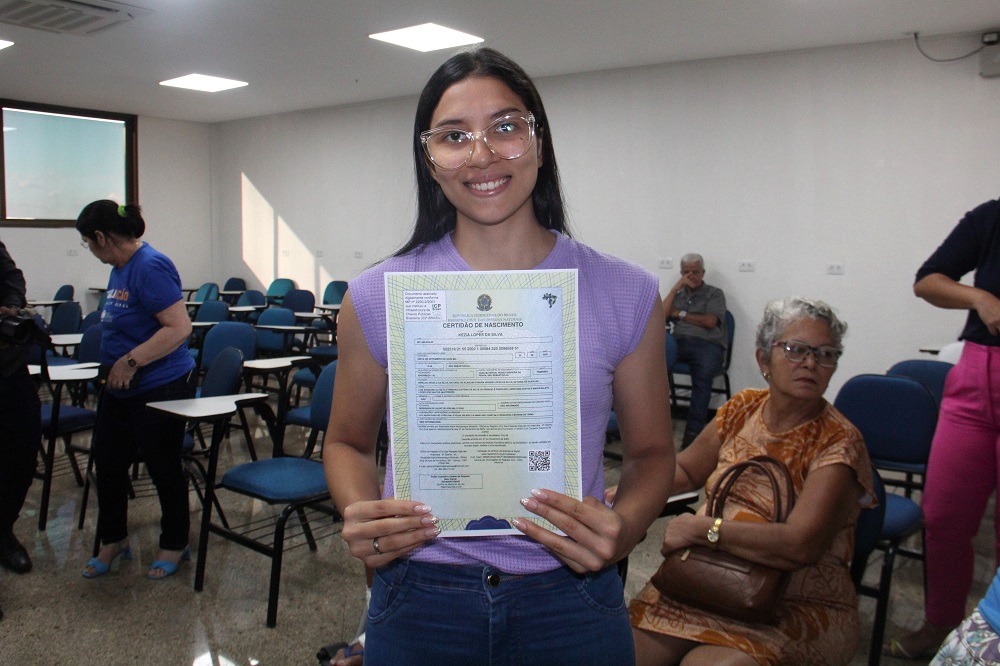 A digitadora Lídia Bruna Marques dos Santos, que reside em Arapiraca, por exemplo, chegou ao Mutirão da Cidadania na Faculdade Cesmac do Agreste somente com uma cópia da certidão de nascimento. O registro original foi levado pelas enchentes que atingiram a cidade de Satuba, em 2022, e deixaram desabrigados os avós de Lídia, que guardavam o documento.