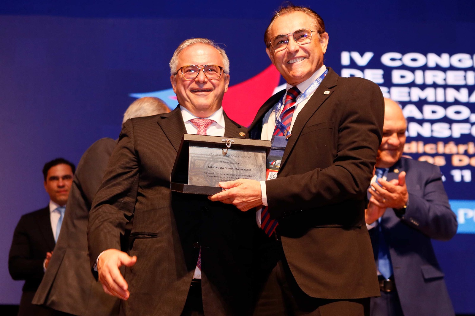 Os desembargadores Orlando Rocha, Otávio Praxedes, Celyrio Adamastor e Fábio Ferrario do Tribunal de Justiça de Alagoas (TJAL) foram homenageados durante o IV Congresso Internacional de Direito: 50 anos do Cesmac, nesta quinta (9), no Centro de Convenções de Maceió.