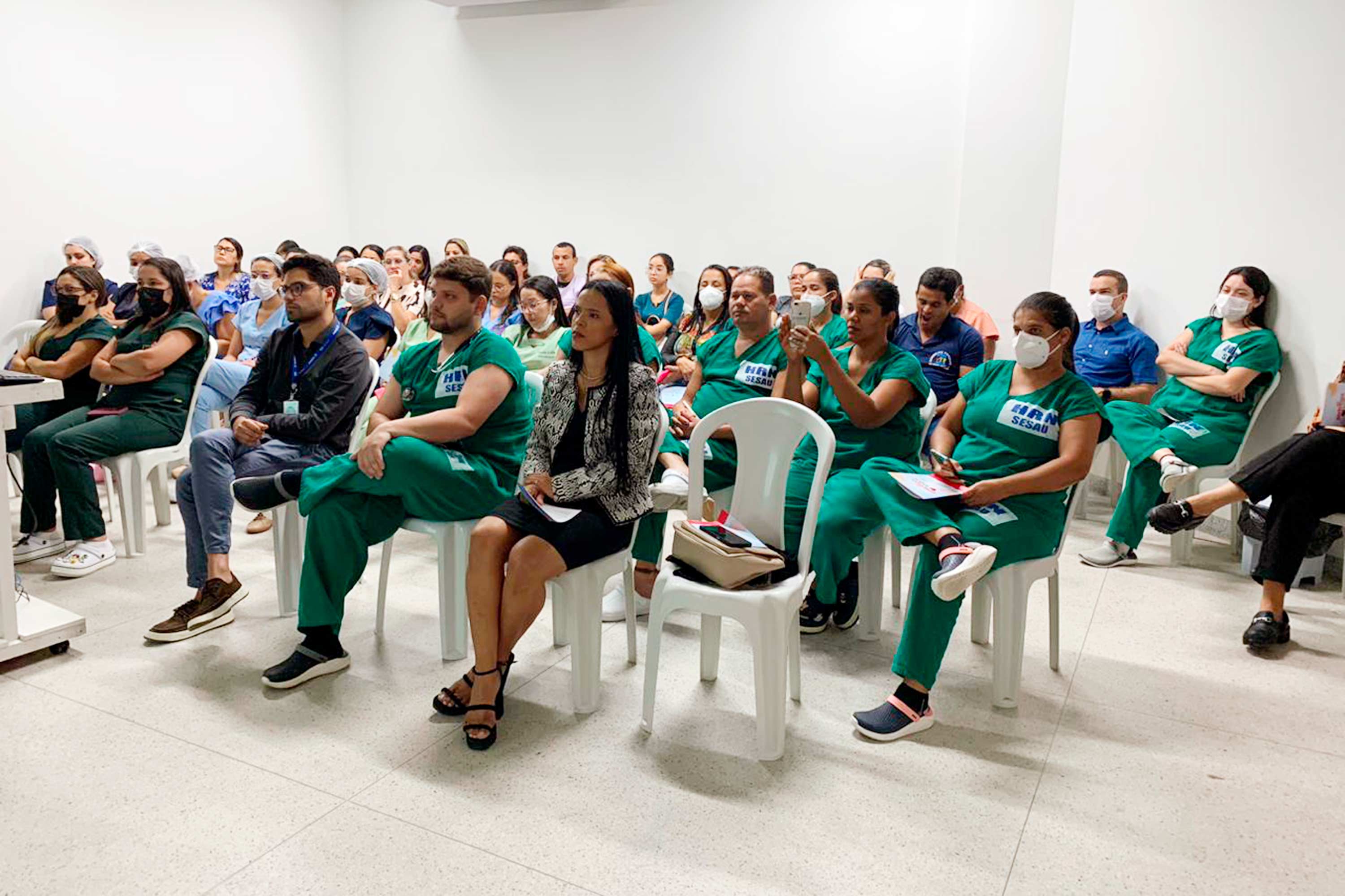 Profissionais do Hospital Regional do Norte (HRN) receberam informações da assistente social Elisângela Ferreira