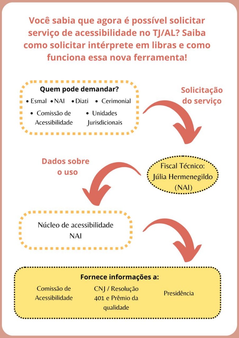 Também podem requisitar um intérprete a Escola Superior da Magistratura de Alagoas (Esmal), a Diretoria Adjunta de Tecnologia da Informação (Diati), o Cerimonial, a Comissão de Acessibilidade e o próprio NAI.