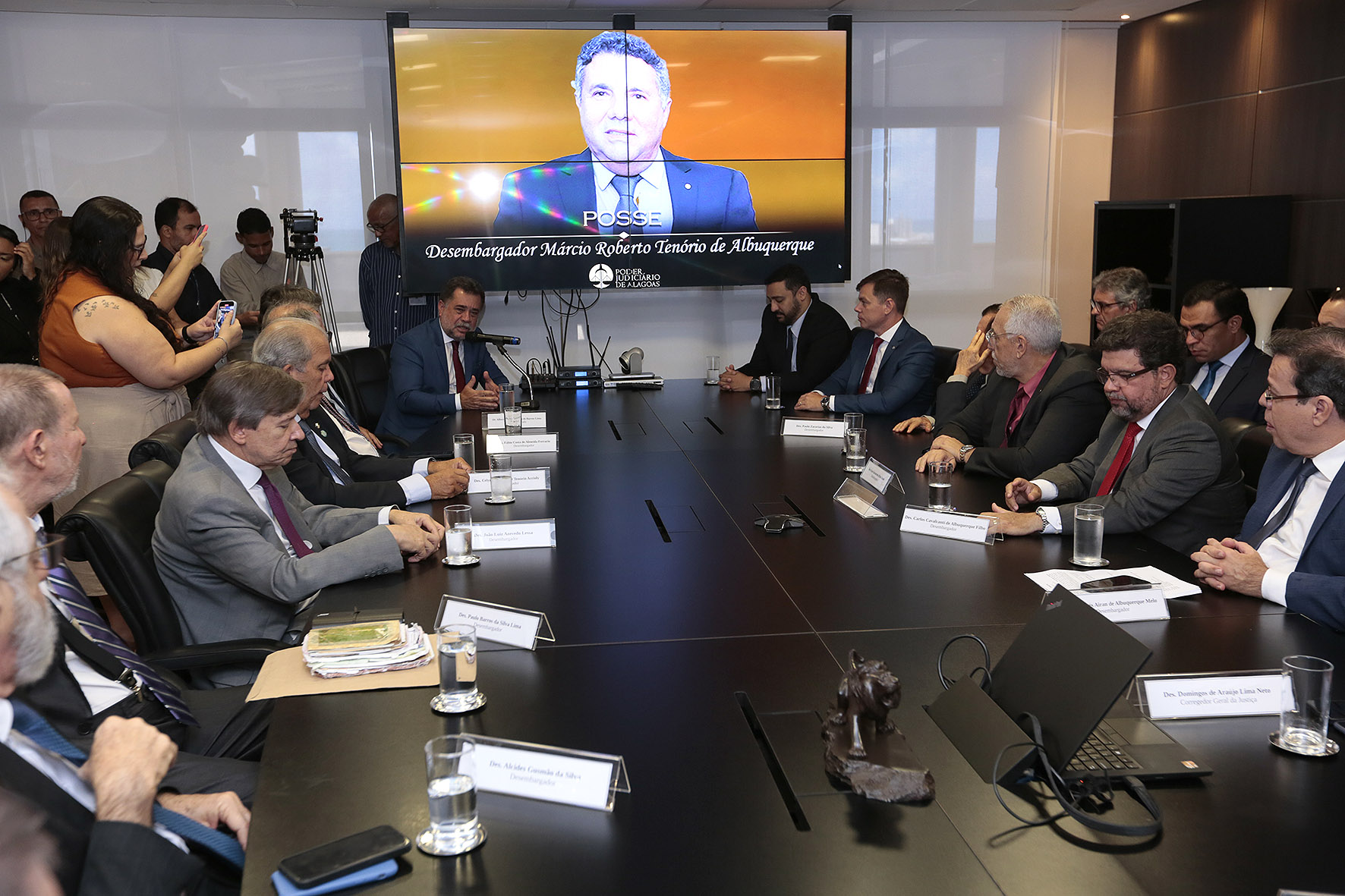 A posse administrativa ocorreu na Presidência do TJAL. O presidente Fernando Tourinho deu as boas-vindas e destacou a trajetória de Márcio Roberto. "Ele é um conciliador, um grande homem. Estamos muito esperançosos de que contribuirá muito para os trabalhos aqui no Poder Judiciário".
