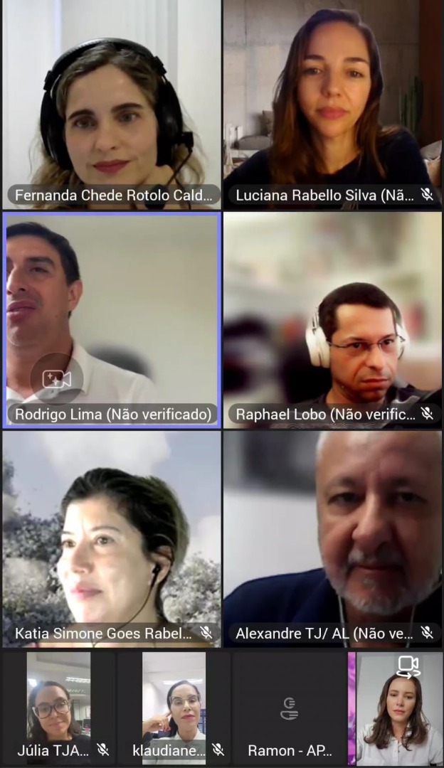Participaram da reunião os representantes do Núcleo de Acessibilidade e Inclusão do TJAL Alexandre Caiado, Júlia Regina Peixoto, Ramon Felix e Klaudiane Passos, além da secretária da Comissão de Acessibilidade e Inclusão (CPAI), Mirela dos Santos.