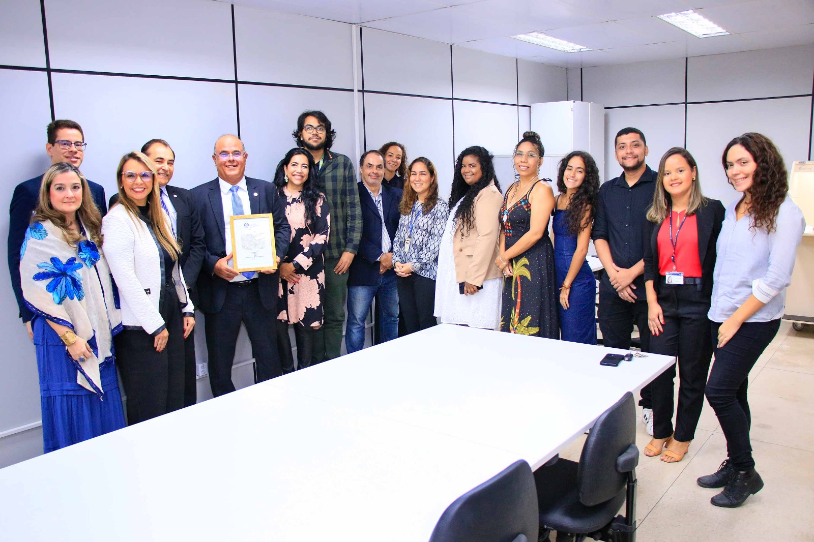 Presidente Fernando Tourinho, magistrados e servidores que atuam na gestão documental do Judiciário de Alagoas. Foto: Adeildo Lobo.