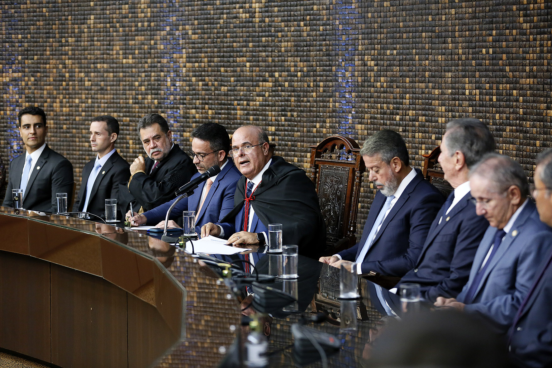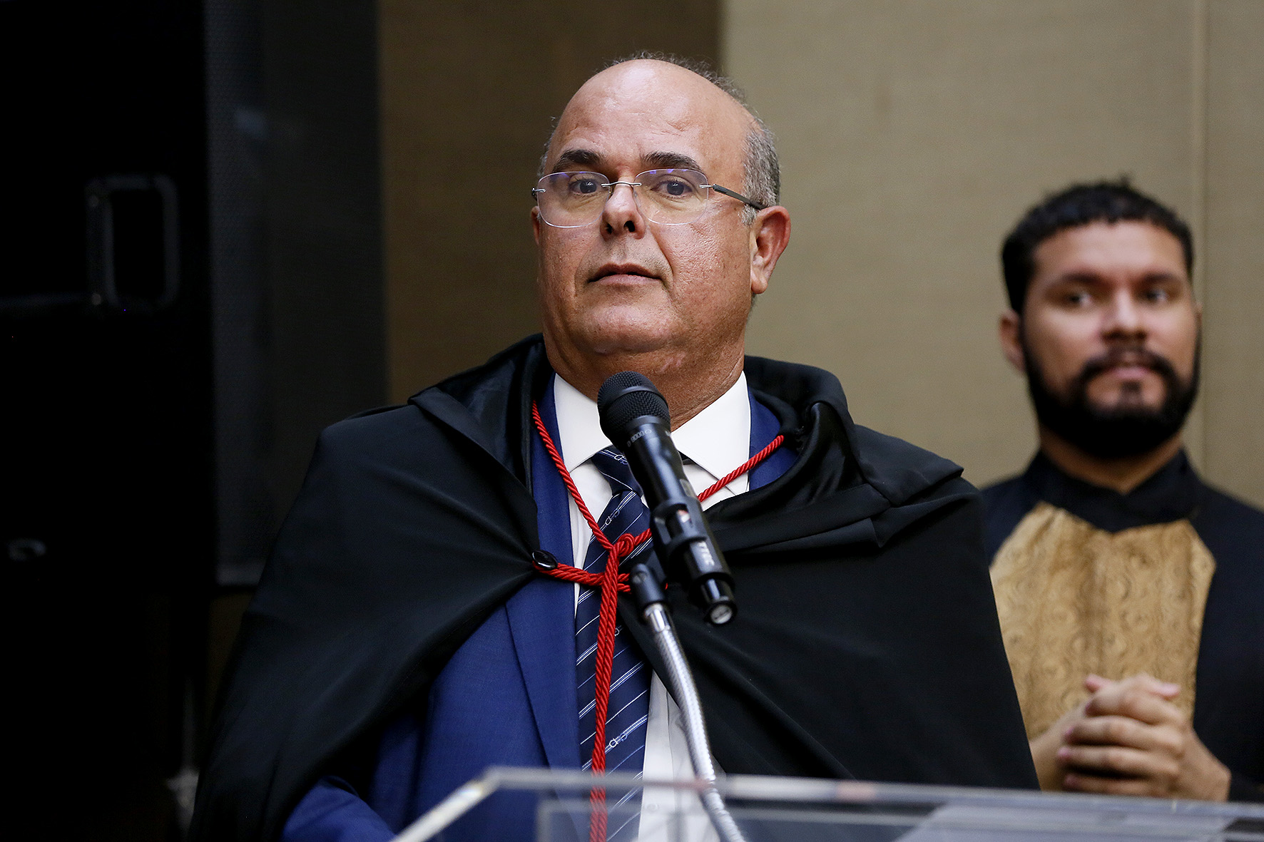 Quebrando o protocolo, o presidente da Ordem dos Advogados do Brasil seccional Alagoas, Vagner Paes, cedeu a palavra ao presidente da subseção da OAB do Vale do Paraíba, Márcio Roberto Júnior, filho do novel desembargador.