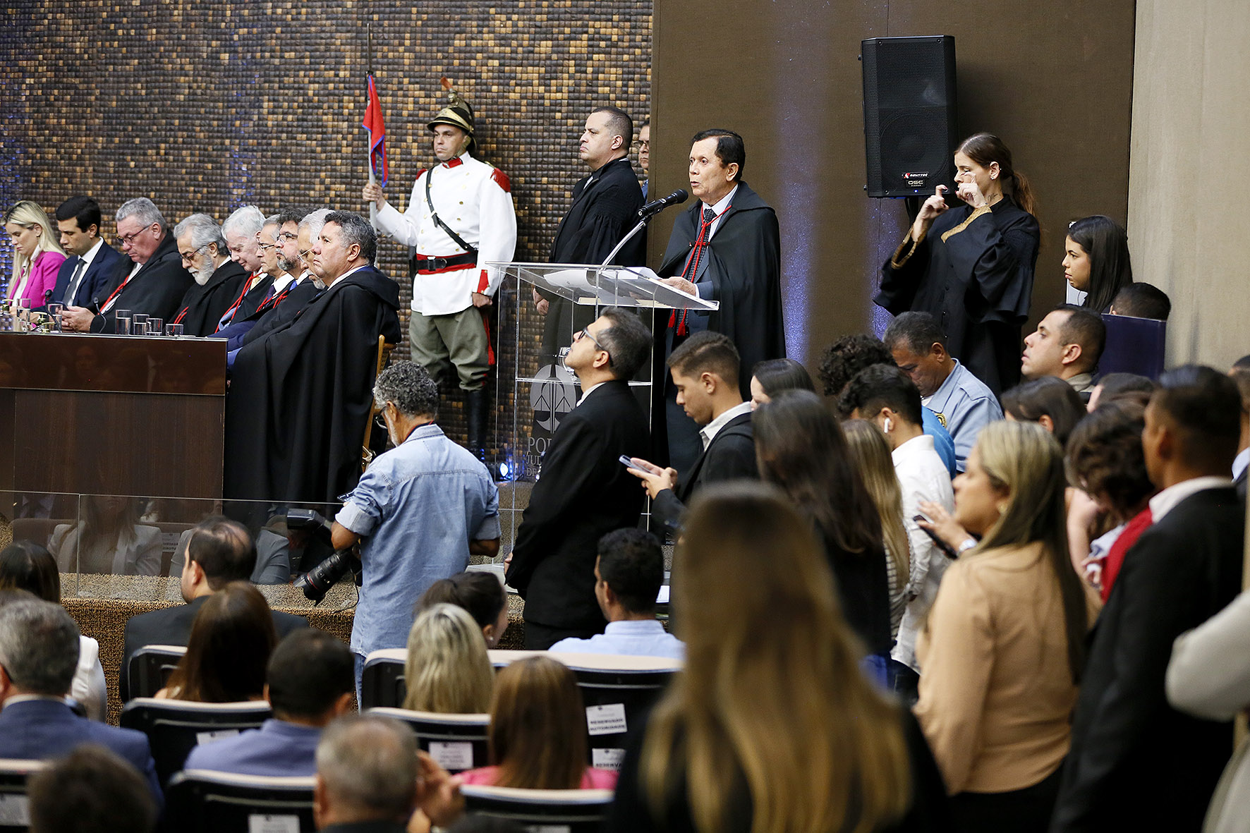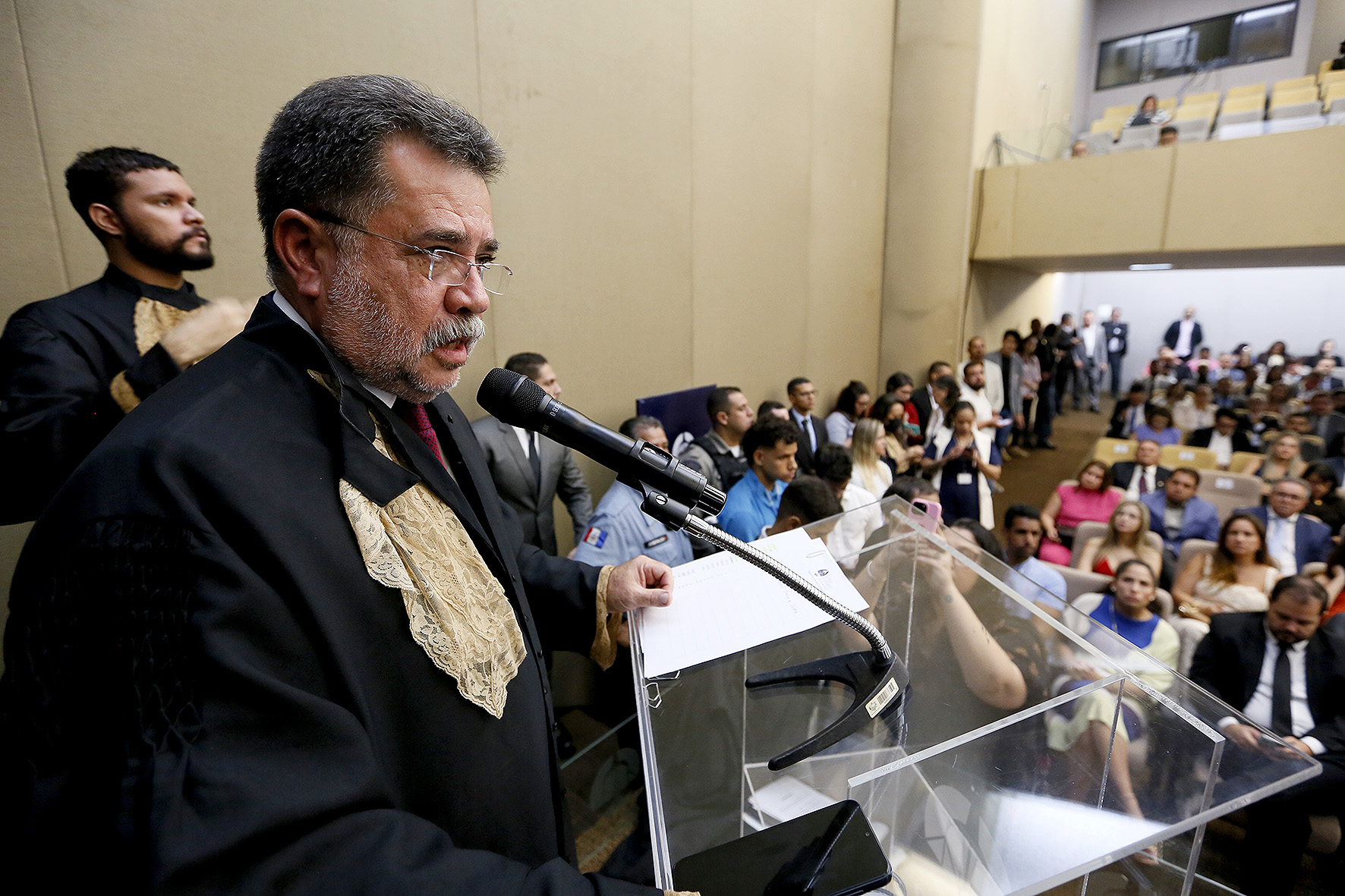 O procurador-geral do estado, Lean Araújo, citou Aristóteles para levar os presentes a refletirem sobre evolução, construção e conhecimento.