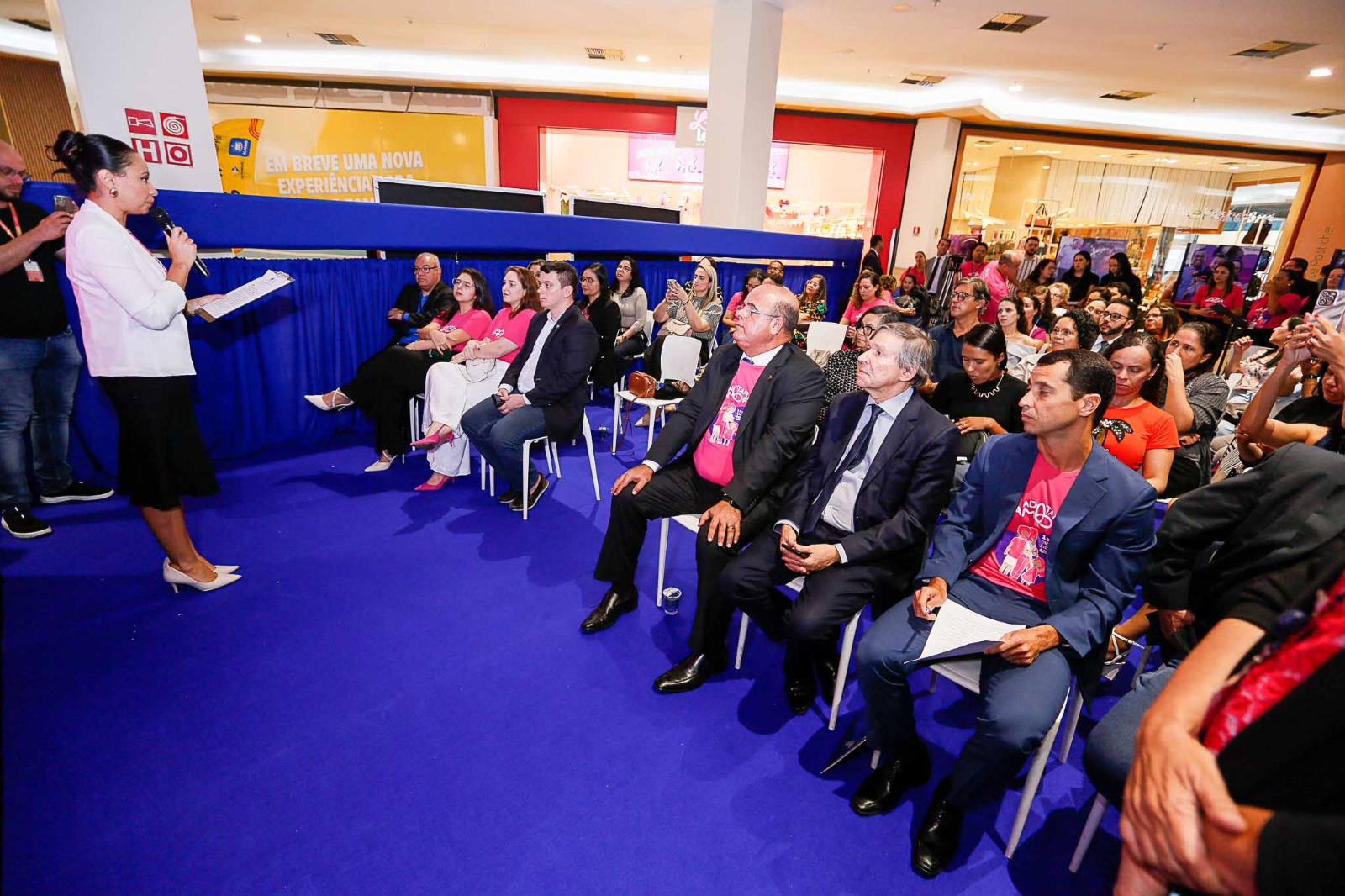 A abertura do evento contou com a presença do desembargador João Luiz, do superintendente do Maceió Shopping, Robson Rodas; das juízas Fátima Pirauá, Aline Kerkoff, Mylena Camarbela; do major Luiz Diego representando a Prefeitura de Maceió, da defensora pública, Taiana Grave; do promotor de justiça, Gustavo Vasconcelos; da vice-presidente da Ordem dos Advogados do Brasil, Nathália Von Sohsten; da secretária de estado da Primeira Infância de Alagoas, Caroline Leite; da secretária de Estado da Cidadania e da Pessoa com Deficiência, Arabela Mendonça, entre outras autoridades.