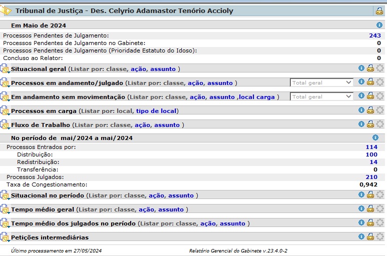 Durante este ano, o gabinete do desembargador distribuiu cerca de 650 processos, entre apelações criminais, habeas corpus, recursos em sentido estrito, revisões criminais e outras espécies processuais de natureza criminal.