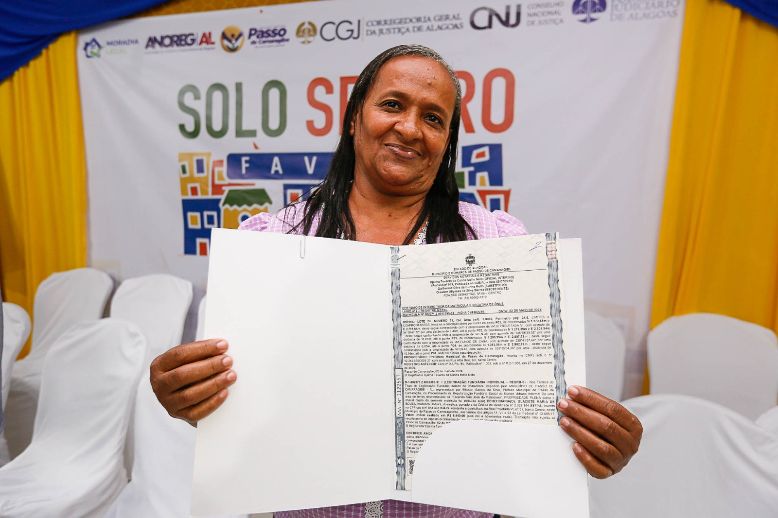 “É um sonho que muita gente persegue, hoje eles estão realizando esse sonho. O Solo Seguro Favela é uma iniciativa do CNJ, que nós do Judiciário alagoano ficamos muito tranquilos, porque já fazemos isso há 12 anos com o Moradia Legal, e é sempre um prazer enorme”.