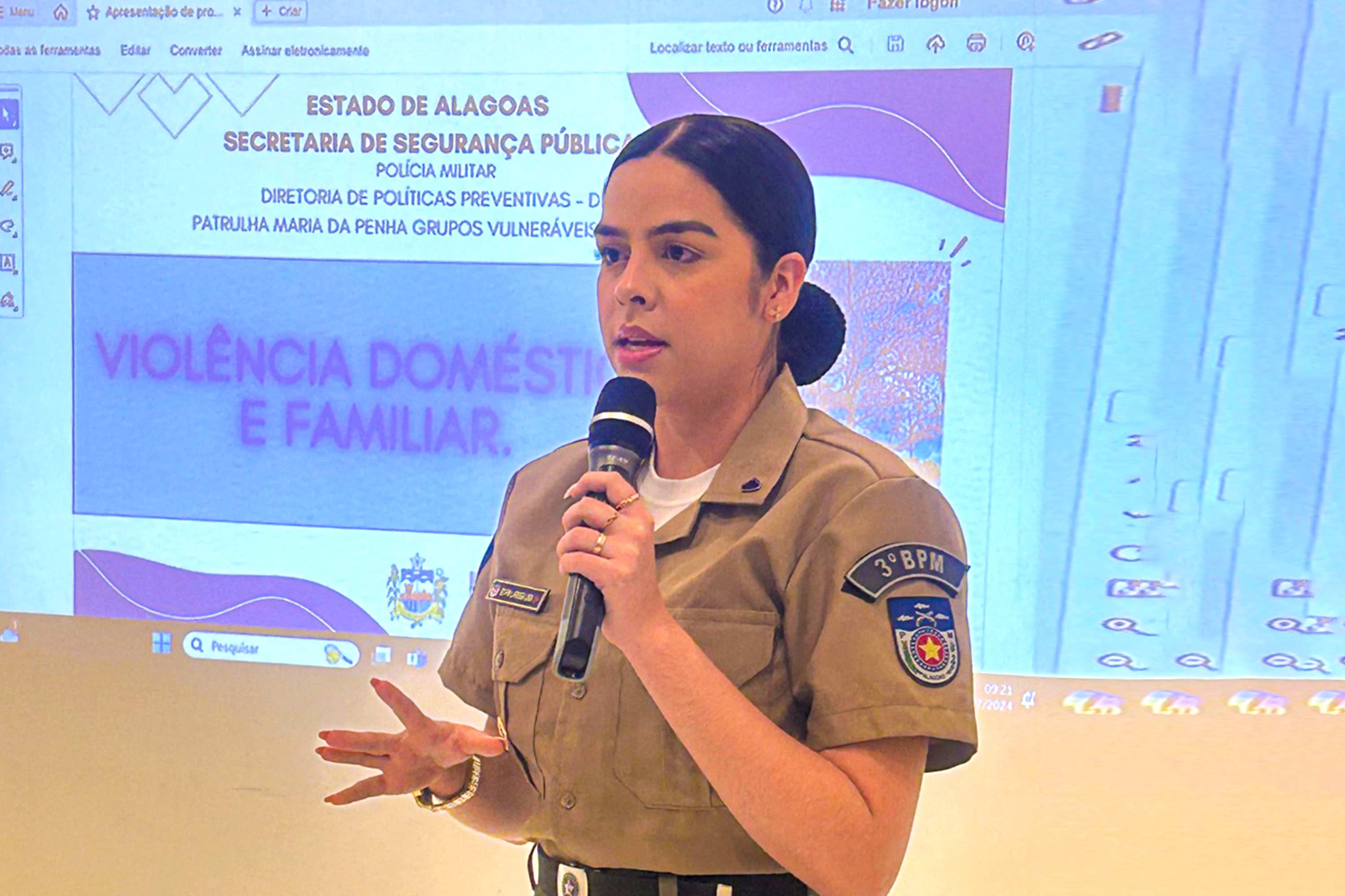 A Polícia Militar também participou da ação mostrando o trabalho da Patrulha Maria da Penha, que fiscaliza o cumprimento das medidas protetivas concedidas pela Justiça.