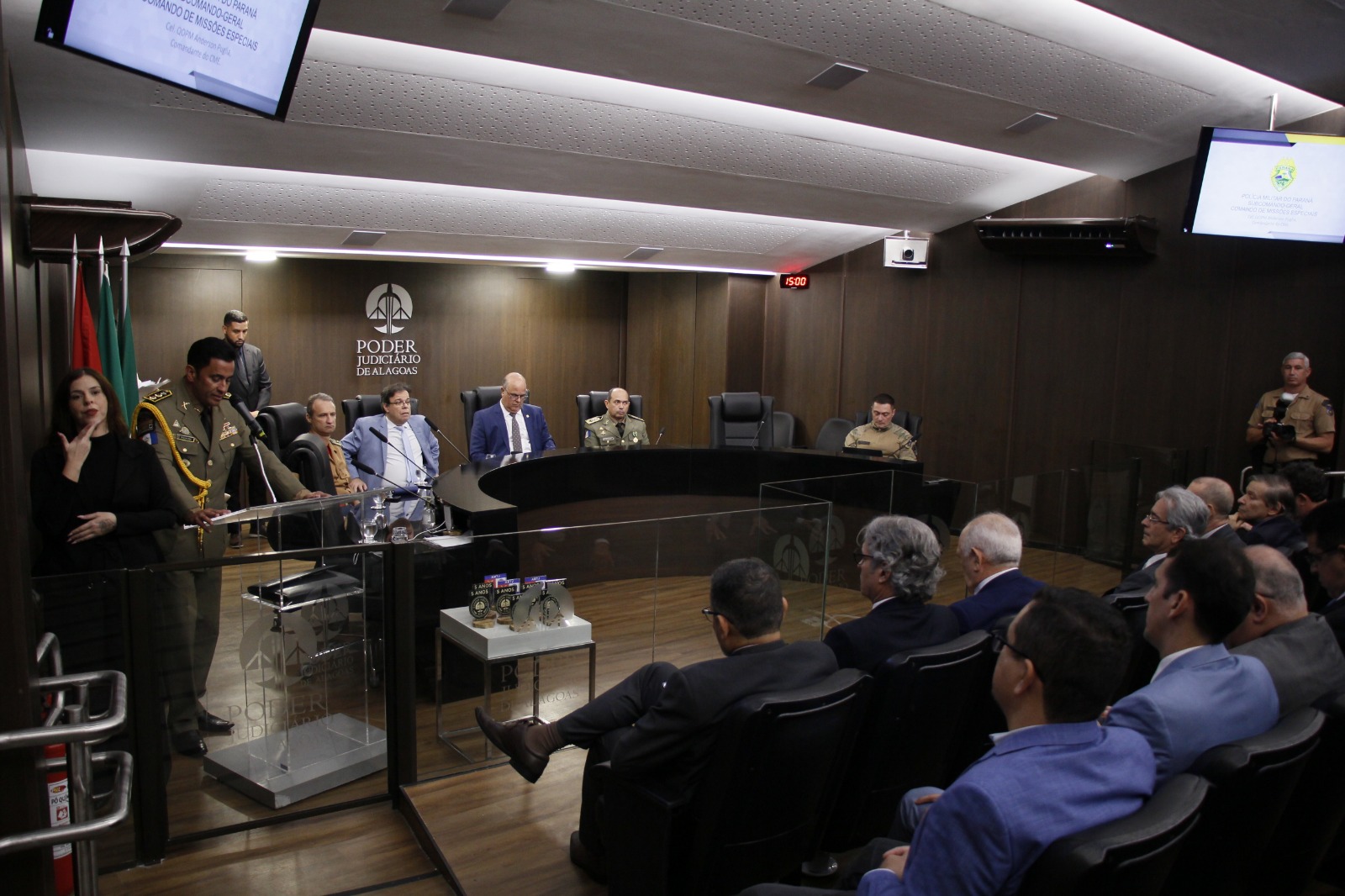 A solenidade contou com a participação de desembargadores, juízes e servidores do TJAL, além de policiais militares, integrantes da guarda e da brigada de incêndio do TJAL.