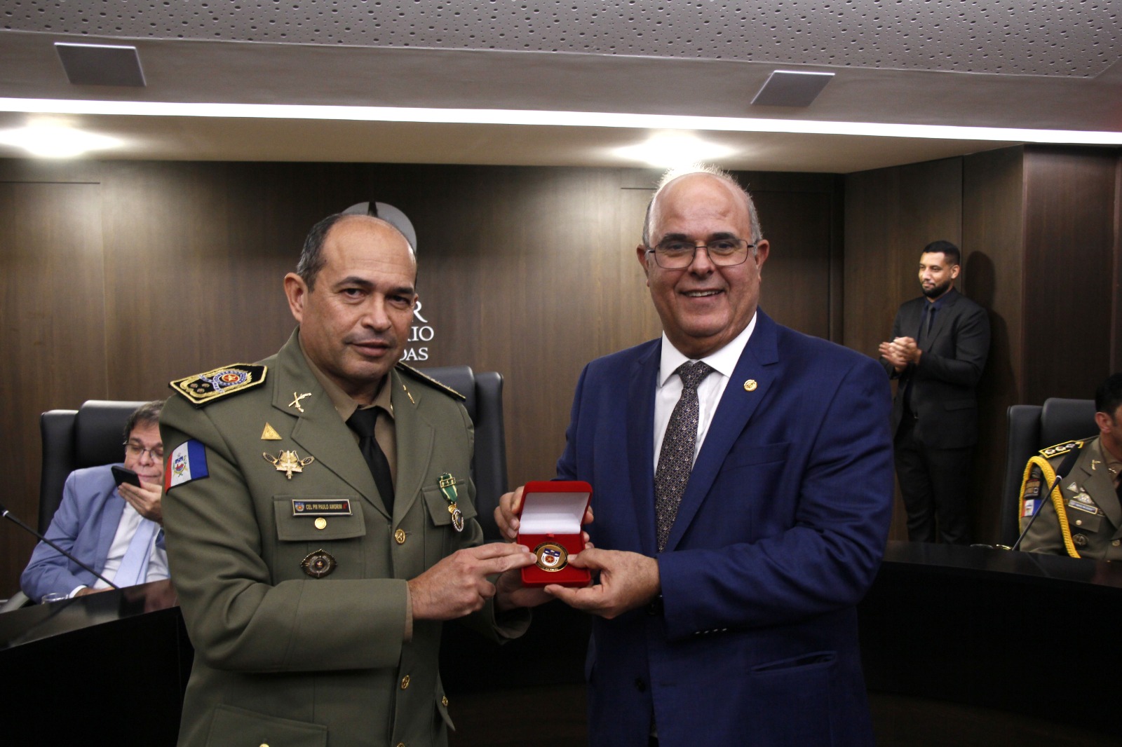 O presidente Fernando Tourinho também foi agraciado com a medalha "Amigo da PM", como reconhecimento pelos serviços prestados na área de segurança pública.