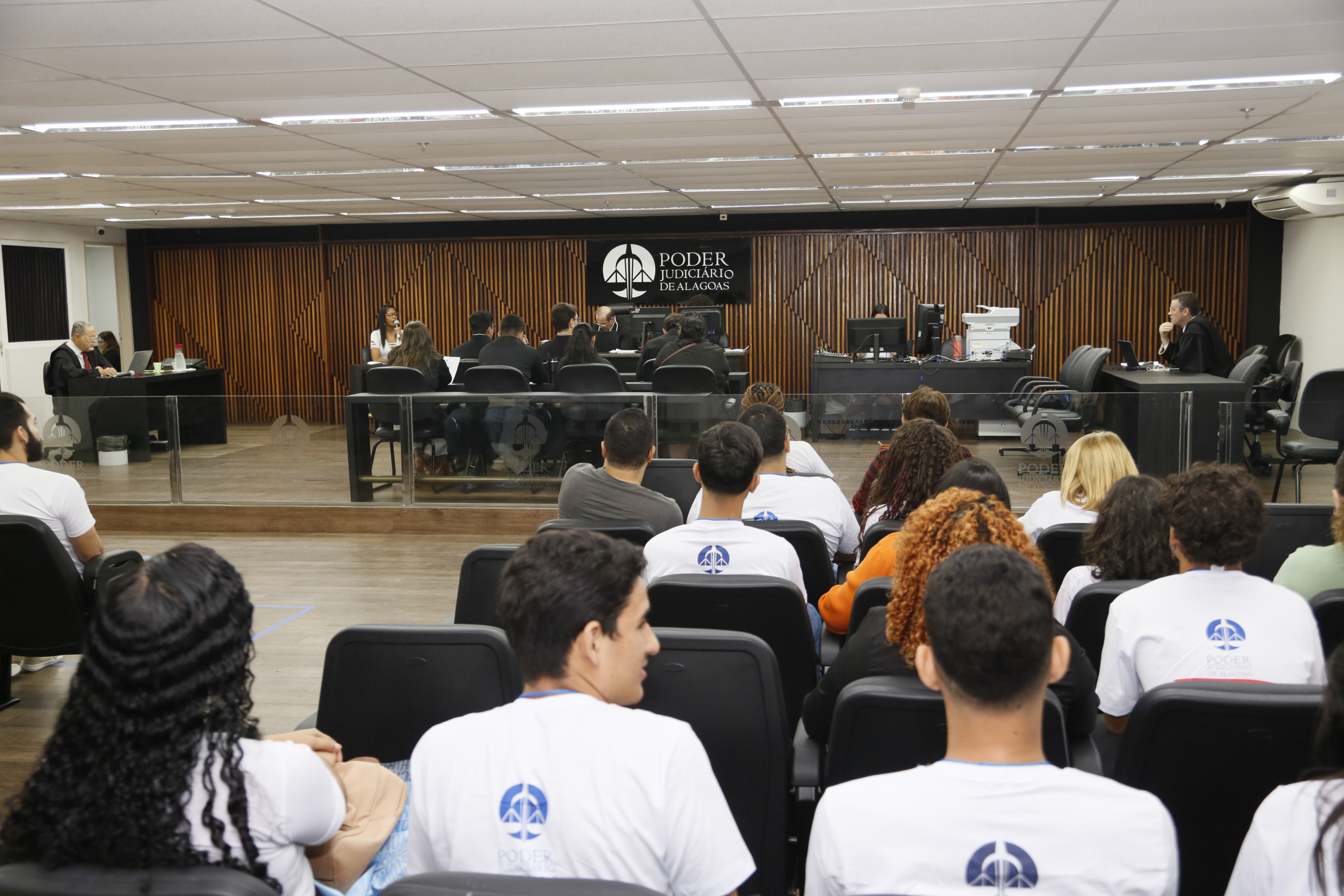 Nesta quinta-feira (29), cerca de 35 alunos de 12 escolas públicas acompanharam uma sessão do Tribunal do Júri no Fórum do Barro Duro. A ação faz parte do projeto “Jovem Juiz” desenvolvido pelo Programa Cidadania e Justiça na Escola (PCJE), atrelado à Escola Superior da Magistratura de Alagoas (Esmal).
