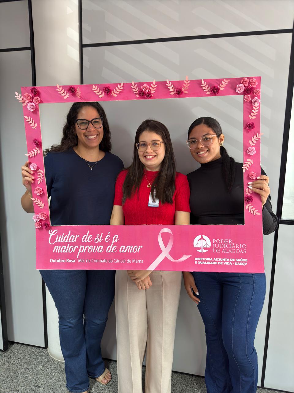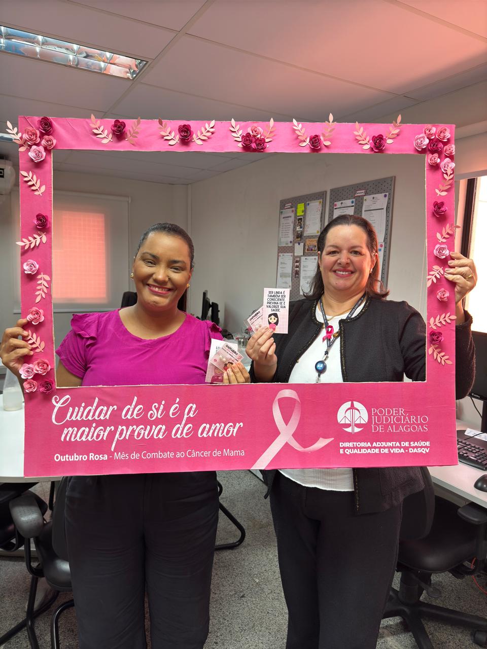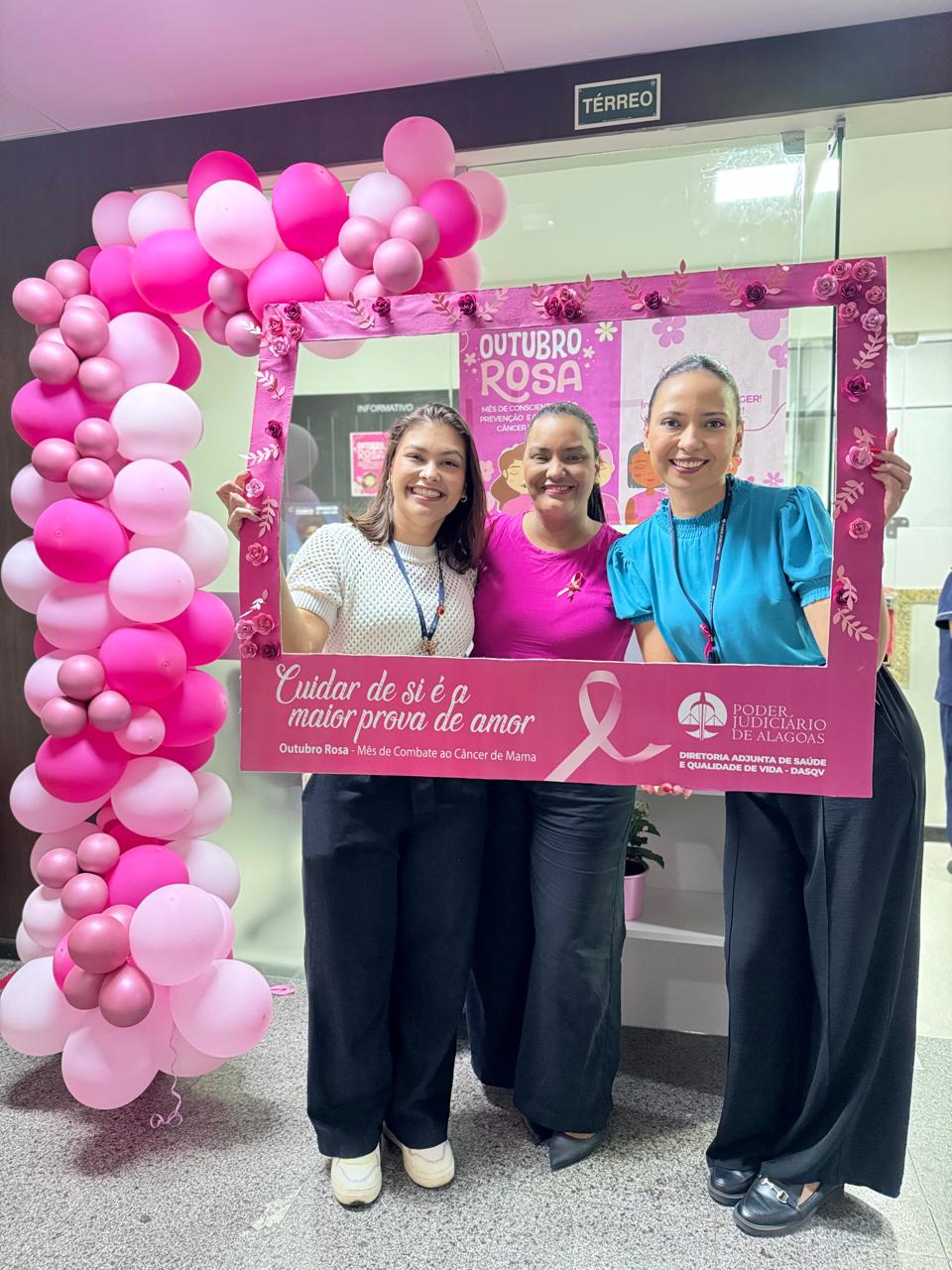 Dando continuidade à campanha do Outubro Rosa, a Diretoria Adjunta de Saúde e Qualidade de Vida (DASQV) do Tribunal de Justiça de Alagoas (TJAL) realiza ação, nesta sexta (25), com orientações sobre o câncer de mama.