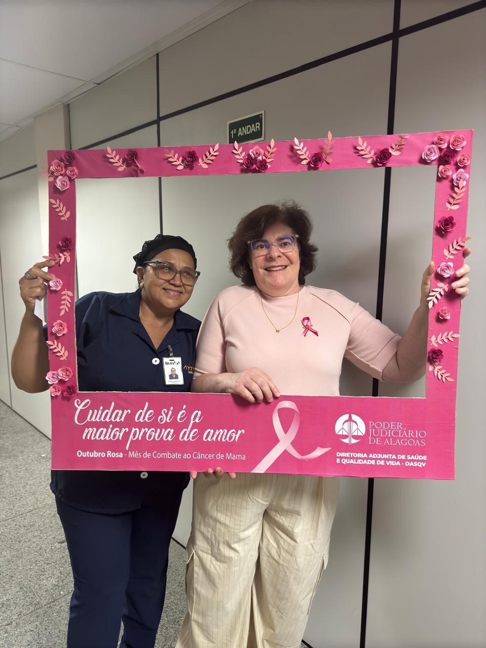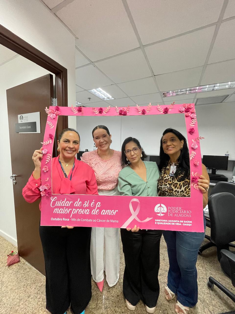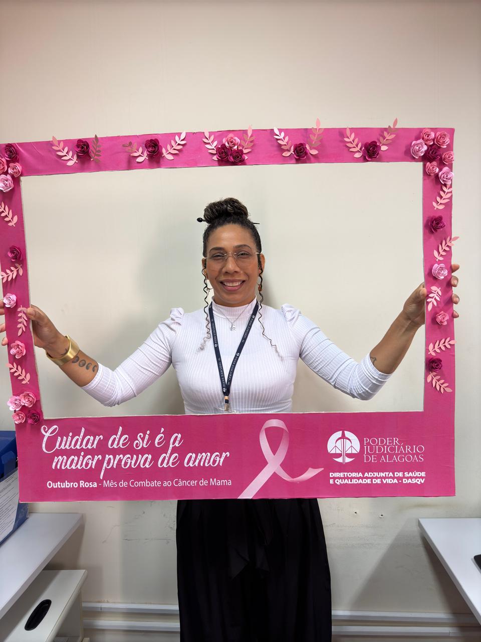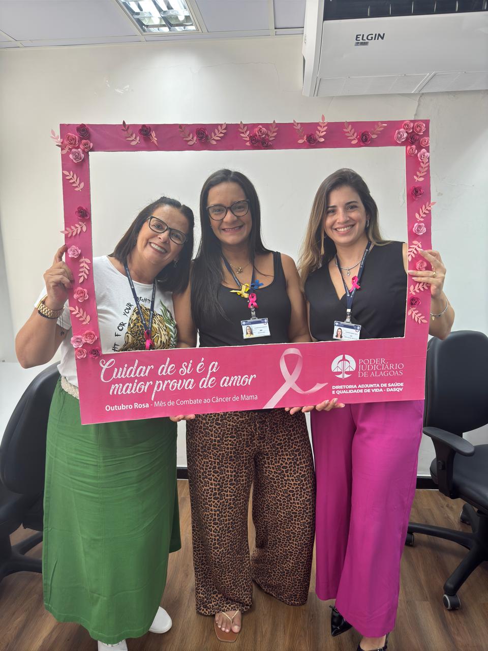 Dando continuidade à campanha do Outubro Rosa, a Diretoria Adjunta de Saúde e Qualidade de Vida (DASQV) do Tribunal de Justiça de Alagoas (TJAL) realiza ação, nesta sexta (25), com orientações sobre o câncer de mama.