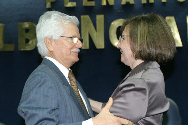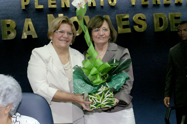 Dando continuidade a cerimônia, o vereador Galba Novaes recitou, em homenagem a mais nova cidadã maceioense, o poema de Vitor Hugo, “O homem e a mulher”. “Enfim o homem está colocado onde termina a terra; a mulher, onde começa o céu”, encerrou o vereador. Em seguida, A vereadora Silvânia Barbosa entregou à magistrada a placa de cidadã maceioense. “Muitas vezes, a gente (mulher) pensa em desistir, mas quando olhamos o seu exemplo, desembargadora, temos força para prosseguir”, finalizou a vereadora.