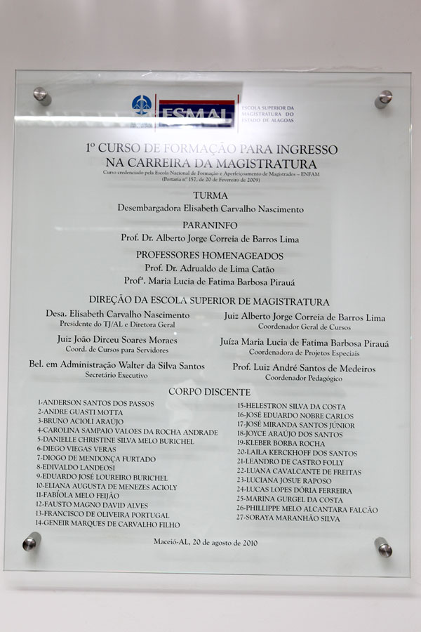 “É com orgulho que falo que o curso está encerrado. Um ciclo vitorioso sem nenhum nível de crítica. Tenho a certeza de que esses novos magistrados irão atuar com competência em qualquer comarca, levando grandes benefícios para a população. Queremos homens sérios e competentes, capazes de melhorar o destino das pessoas”, falou o juiz auxiliar da presidência do Tribunal de Justiça de Alagoas (TJ/AL), Alberto Jorge Correia de Barros Lima, ao recepcionar os novos magistrados.