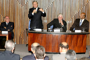 A celeridade na aprovação e sanção da Lei nº 6.806/2007 (instituidora da 17ª Vara) foi ressaltada no discurso do representante da Assembléia Legislativa, deputado Alberto Sexta-Feira. “A pressa em aprovar a matéria não representou apenas uma deferência aos demais poderes, mas também a preocupação dos senhores deputados com a demanda da sociedade”, frisou o parlamentar.