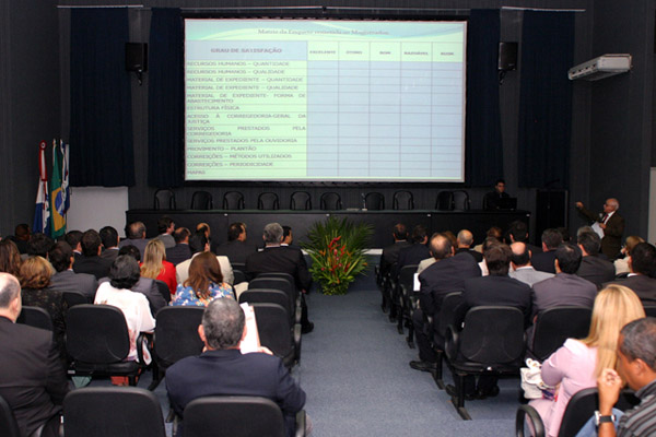 Magistrados das varas cíveis e criminais da capital, bem como das comarcas do interior do Estado compareceram à reunião, que teve início com a explanação, feita pelo corregedor-geral James Magalhães de Medeiros, acerca do planejamento estratégico da Corregedoria para o biênio 2011/2012.