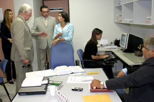 Na sexta-feira, o evento foi contemplado com a visita do presidente da Corte alagoana, desembargador José Fernandes de Hollanda Ferreira, que estava acompanhado dos juízes Jamil Ferreira, titular da 5ª Vara Criminal e presidente do Fundo Especial da Modernização do Judiciário (Funjuris); Domingos de Araújo Lima Neto, coordenador do Justiça Itinerante; e Pedro Jorge Melro Cansação, além do secretário especial da Presidência do TJ/AL, Marcos Joel Nunes.