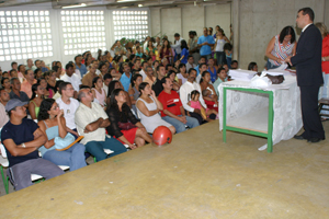 Pela primeira vez, a Coordenadoria de Justiça Itinerante realizou casamentos em paralelo às atividades do Justiça nos Bairros. A cerimônia coletiva, presidida pelo juiz André Gêda Peixoto, proporcionou a união de sessenta casais. Devido à facilidade, comodidade e, principalmente, à gratuidade dos serviços, as celebrações do projeto “Casamento Coletivo” têm atraído, em todas as edições, um grande número de casais, muitos deles vindos de outros bairros da Capital e até de municípios próximos, como os jovens Elaine Cristina e José Adriano, da cidade de Rio Largo, na região metropolitana de Maceió.