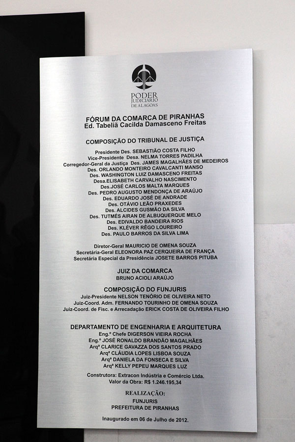 O presidente do Tribunal de Justiça de Alagoas (TJ/AL), desembargador Sebastião Costa Filho, inaugurou na manhã desta sexta-feira (06), o novo fórum da comarca de Piranhas, reafirmando o compromisso do Poder Judiciário de elevar a qualidade da prestação de serviços jurisdicional. O novo fórum irá beneficiar os 25.000 habitantes do município e também moradores de Olho D'Água do Casado, Sertão de Alagoas.