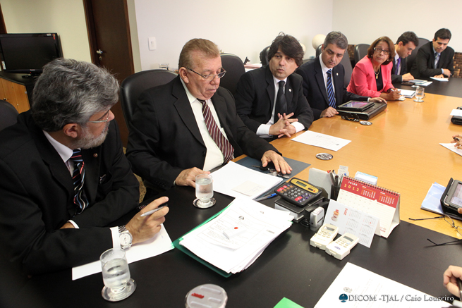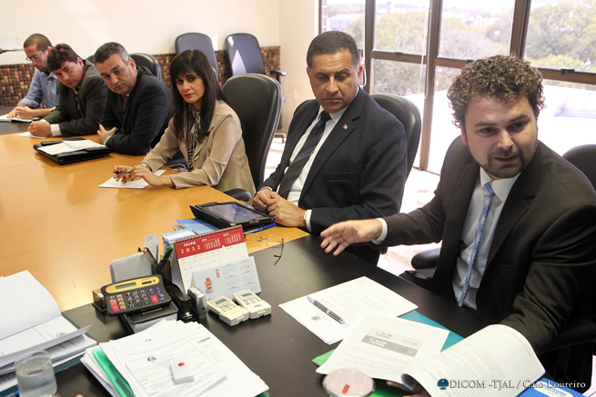 O secretário de Defesa Social, Dario Cesar, a vice-presidente da Ordem dos Advogados do Brasil (OAB/Alagoas), Rachel Cabús, o procurador geral de Justiça, Eduardo Mendes Tavares, o promotor Alfredo Gaspar de Mendonça, o defensor público Antônio de Campos Lopes, os juízes Diógenes Tenório e Alberto Jorge Correia (auxiliares da Presidência do TJ) e Maurício Brêda participaram do encontro.