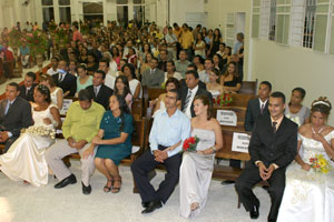 Mais uma ação do projeto Justiça Itinerante, do Tribunal de Justiça de Alagoas (TJ/AL), foi desempenhada neste último sábado (20). Em cerimônia coletiva, presidida pelo juiz John Silas da Silva, trinta casais afirmaram união na Igreja Batista do Pinheiro, no bairro do Farol, Maceió. As atividades foram iniciadas às 8h com a triagem dos casais, realizada pelo Cartório de Registro Civil do 6º Distrito, e a celebração dos casamentos aconteceu às 19h30.