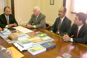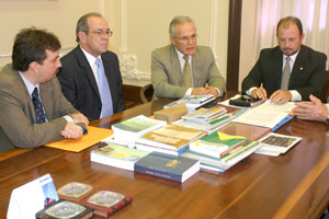 Acompanharam o presidente do TJ/AL os membros da comissão responsável pelos estudos da Vara Agrária, juiz Carlos Cavalcanti de Albuquerque Filho (auxiliar da Presidência) e professor Delson Lira, além do secretário especial da Presidência, Marcos Joel Nunes Marques.