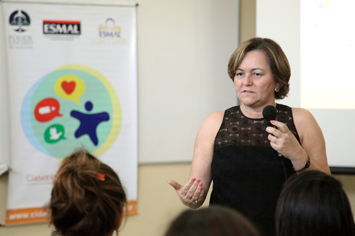 Ministrada pela promotora de Justiça Maria Marluce Caldas Bezerra, a palestra contou com a abertura da desembargadora Nelma Torres Padilha, coordenadora do PCJE, e foi realizada no Centro de Ciências e Tecnologia da Educação (Cecite).