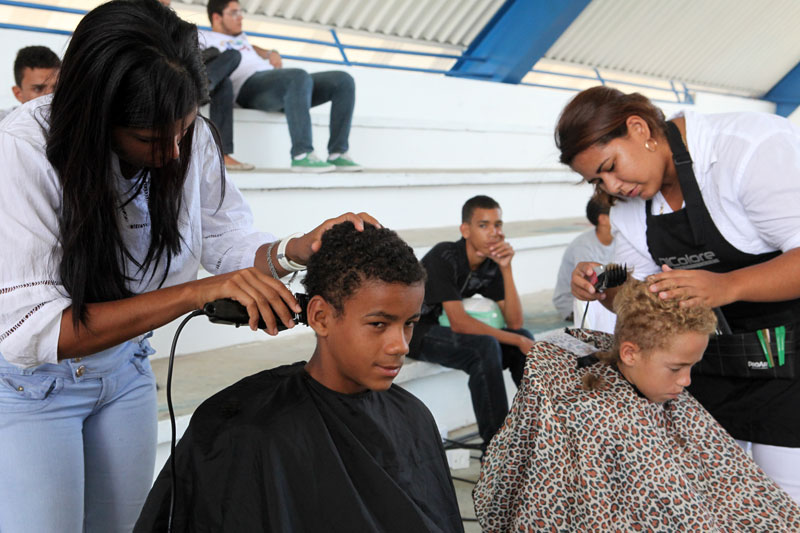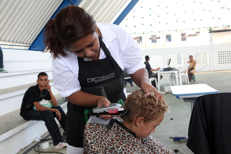 João Paulo da Conceição (21), funcionário de um supermercado no bairro da Ponta Verde, aproveitou as ações do Programa Justiça Itinerante, no Bairro do Benedito Bentes II, em Maceió, no último sábado, para desfrutar do corte gratuito de seus cabelos. Sua esposa também aproveitou o projeto para solicitar a segunda via de dois documentos: a certidão de nascimento de sua filha e seu registro geral (RG).