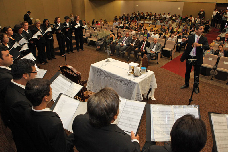 Desembargadores, juízes e servidores que atuam nos diversos setores do Tribunal de Justiça de Alagoas (TJ/AL) participaram, na manhã desta segunda-feira (25), no prédio-sede da Corte de Justiça, em Maceió, de missa alusiva à Semana Santa, celebrada no Plenário pelo monsenhor José Augusto. Integrantes do coral do TJ participaram da celebração religiosa.