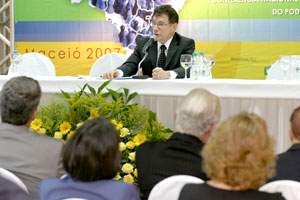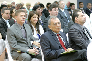 O membro da comissão gestora do Fundo Especial de Modernização do Judiciário de Alagoas (Funjuris), juiz Otávio Leão Praxedes, representando o presidente do órgão, juiz Jamil Ferreira, discursou pouco antes da palestra inaugural. O magistrado realçou o comprometimento e a eficiência dos trabalhos de planejamento que os fundos executam e fez um histórico sobre os investimentos canalizados pelo Funjuris na execução de importantes obras no Judiciário alagoano, como a reestrutuação do Fórum Central de Maceió e a edificação do novo prédio do TJ/AL, além da construção e reforma de vários fóruns no interior.