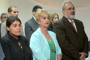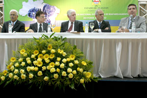 Compuseram a mesa solene de abertura da conferência, o presidente do TJ/AL, desembargador José Fernandes de Hollanda Ferreira; o presidente do Colégio Permanente de Presidentes de Tjs do Brasil, desembargador José Fernandes Filho; o presidente do TJ de Minas Gerais, desembargador Orlando Adão de Carvalho; o vice-presidente Tribunal Regional Eleitoral de Alagoas (TRE/AL), desembargador Estácio Luiz Gama de Lima; o juiz-auxiliar da Corregedoria Nacional de Justiça, Murilo Kieling, representando o corregedor-nacional, ministro César Asfor Rocha; o membro da Comissão Gestora do Funjuris, juiz Otávio Leão Praxedes; o procurador de Justiça Artran de Pereira Monte, representando o Ministério Público de Alagoas; e o presidente da Ordem dos Advogados do Brasil, seccional de Alagoas (OAB/AL), advogado Omar Coelho de Melo.