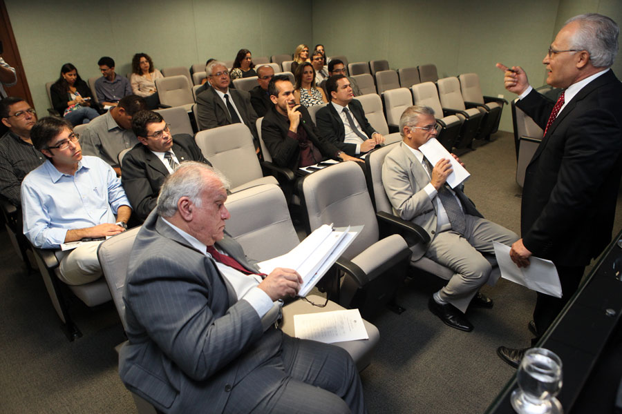 Alexandre Caiado durante explicação de projetos apresentados por servidores Caio Loureiro (Dicom/TJ)