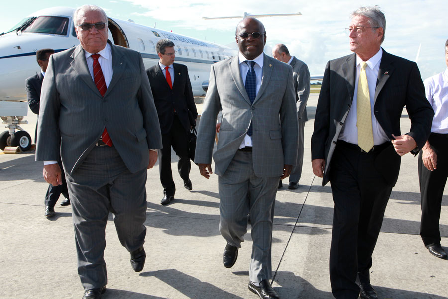 O presidente do Supremo Tribunal Federal (STF) e do Conselho Nacional de Justiça (CNJ), ministro Joaquim Barbosa, foi recepcionado pelo presidente do Tribunal de Justiça de Alagoas (TJ/AL), José Carlos Malta, e o Corregedor-Geral de Justiça, Alcides Gusmão, na tarde desta segunda-feira (14). O ministro desembarcou no Aeroporto Internacional Zumbi dos Palmares, em Maceió. O governador do Estado, Teotônio Vilela, também recebeu o presidente do STF.