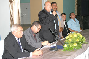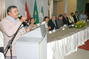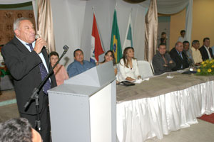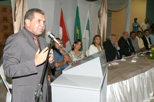 Prefeito Siloé Moura, desembargador Washington Luiz Damasceno e o presidente da Câmara municipal, Clóvis Vieira