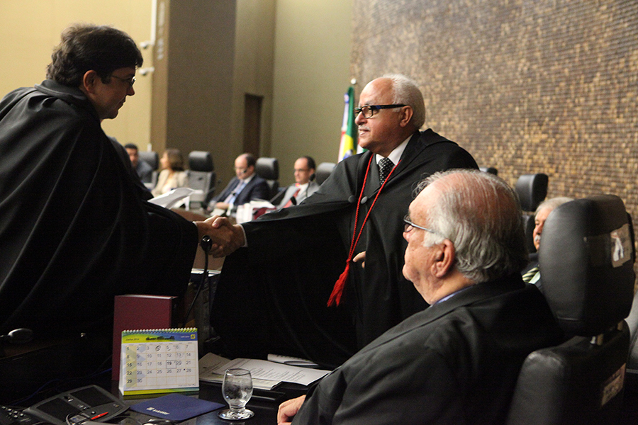 Desembargador José Carlos Malta cumprimentando o desembargador eleitoral Frederico Dantas. Foto: Pedro Conselheiro