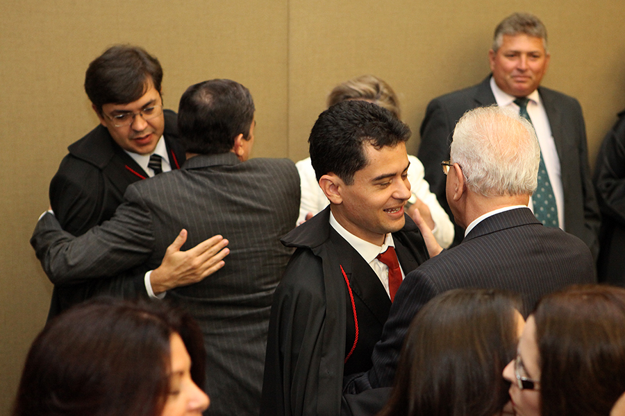 O presidente em exercício do TRE, desembargador James Magalhães de Medeiros, deu início a cerimônia e destacou a importância da renovação dos quadros no TRE. O desembargador eleitoral Alberto Jorge Barros de Lima fez o discurso de boas vindas aos novéis desembargadores destacando as qualidades dos magistrados.