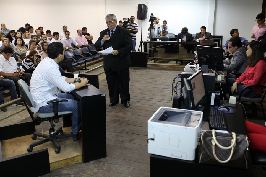 Réu confesso Marcelo Carnaúda foi interrogado durante sessão conduzida pelo juiz Geraldo Amorim