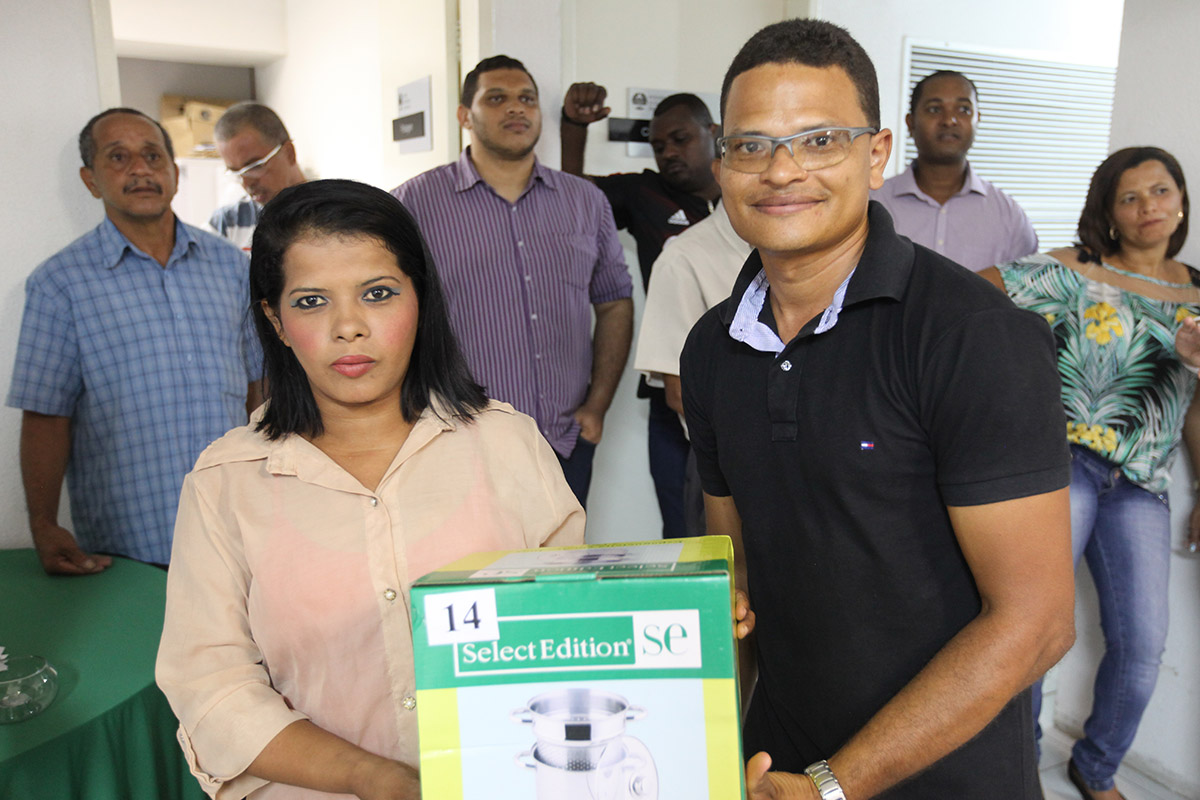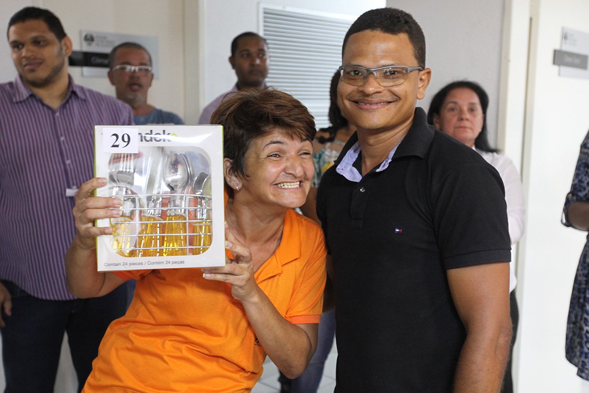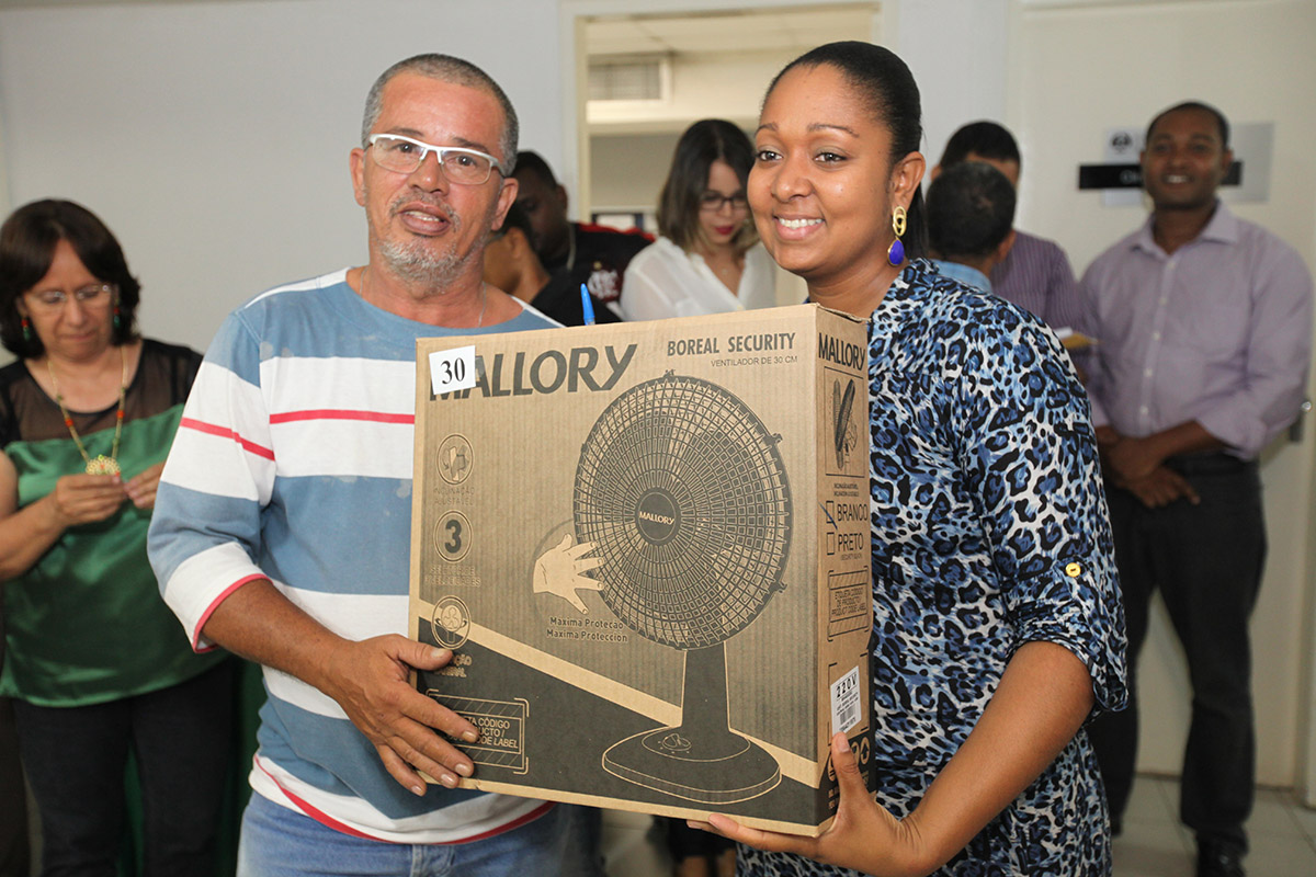 Em clima de natal, a Diretoria do Fórum da Capital arrecadou prêmios e promoveu uma confraternização entre os servidores terceirizados do serviço geral. Além de receberem uma cesta de natal, foram sorteados liquidificadores, batedeiras, ventiladores, entre outros. Os trabalhadores também concorreram a uma mesa, um micro-ondas, um fogão e uma TV de 32 polegadas.
