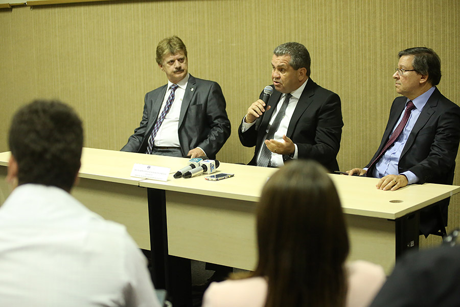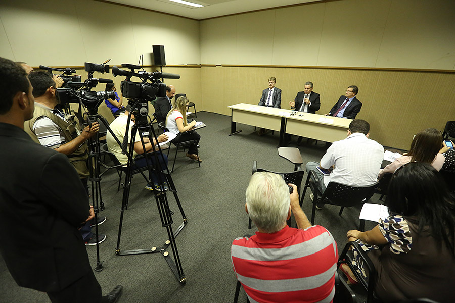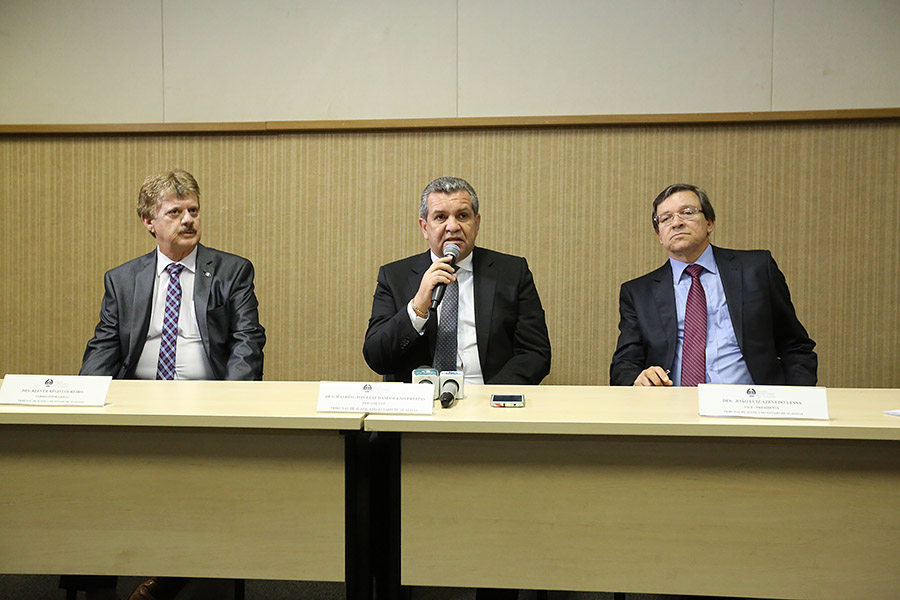 A cúpula diretiva do Tribunal de Justiça de Alagoas (TJ/AL), biênio 2015-2016, composta pelos desembargadores Washington Luiz Damasceno Freitas (presidente), João Luiz Azevedo Lessa (vice-presidente) e Klever Rêgo Loureiro (corregedor-geral), concedeu entrevista coletiva, na tarde desta segunda-feira (5), antes da cerimônia de posse, no Centro Cultural e de Exposições Ruth Cardoso, em Maceió.