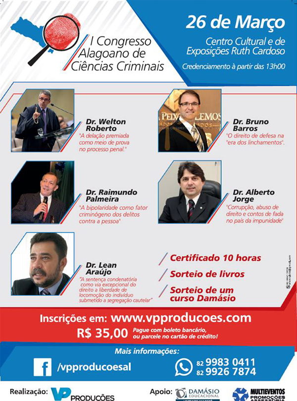 As inscrições custam R$ 35 e devem ser feitas no site www.vpproducoes.com. Os participantes receberão certificado com carga horária de 10 horas e participarão de sorteio de livros e curso jurídico.