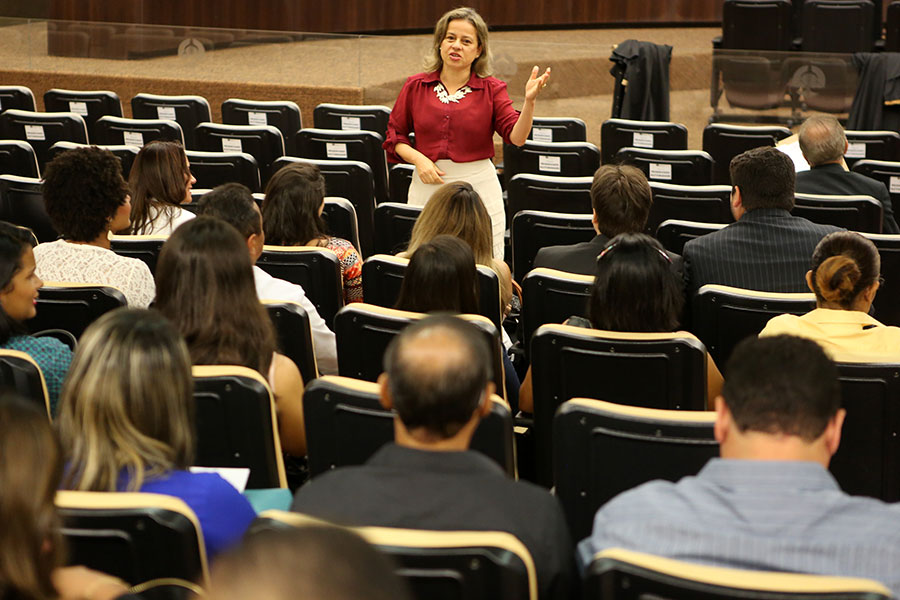 Secretária Margarida Melo explicou aos alunos sobre o funcionamento do TJ/AL. Foto: Caio Loureiro