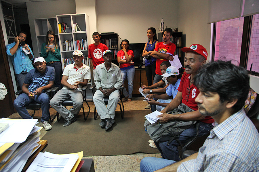 Após concentração de integrantes de movimentos sociais que lutam pela terra na frente do Tribunal de Justiça de Alagoas (TJ/AL) nesta quinta-feira (01), o desembargador Tutmés Airan de Albuquerque Melo conversou com representantes dos grupos sobre a possibilidade de parte das terras pertencentes à massa falida do Grupo João Lyra ser destinada às famílias acampadas em Alagoas.