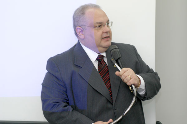 Desembargador Antônio Sapucaia discursa no auditório do TRE