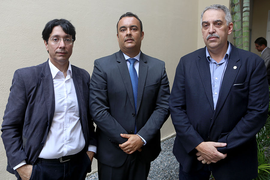 Washington Luiz, Inácio Loiola e Cristiano Matheus fazem o hasteamento das bandeiras. (Fotos: Caio Loureiro)